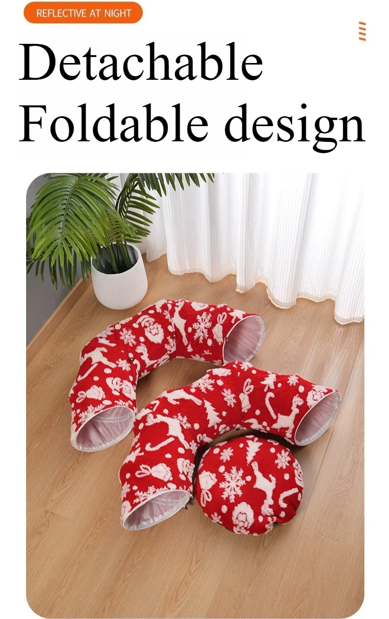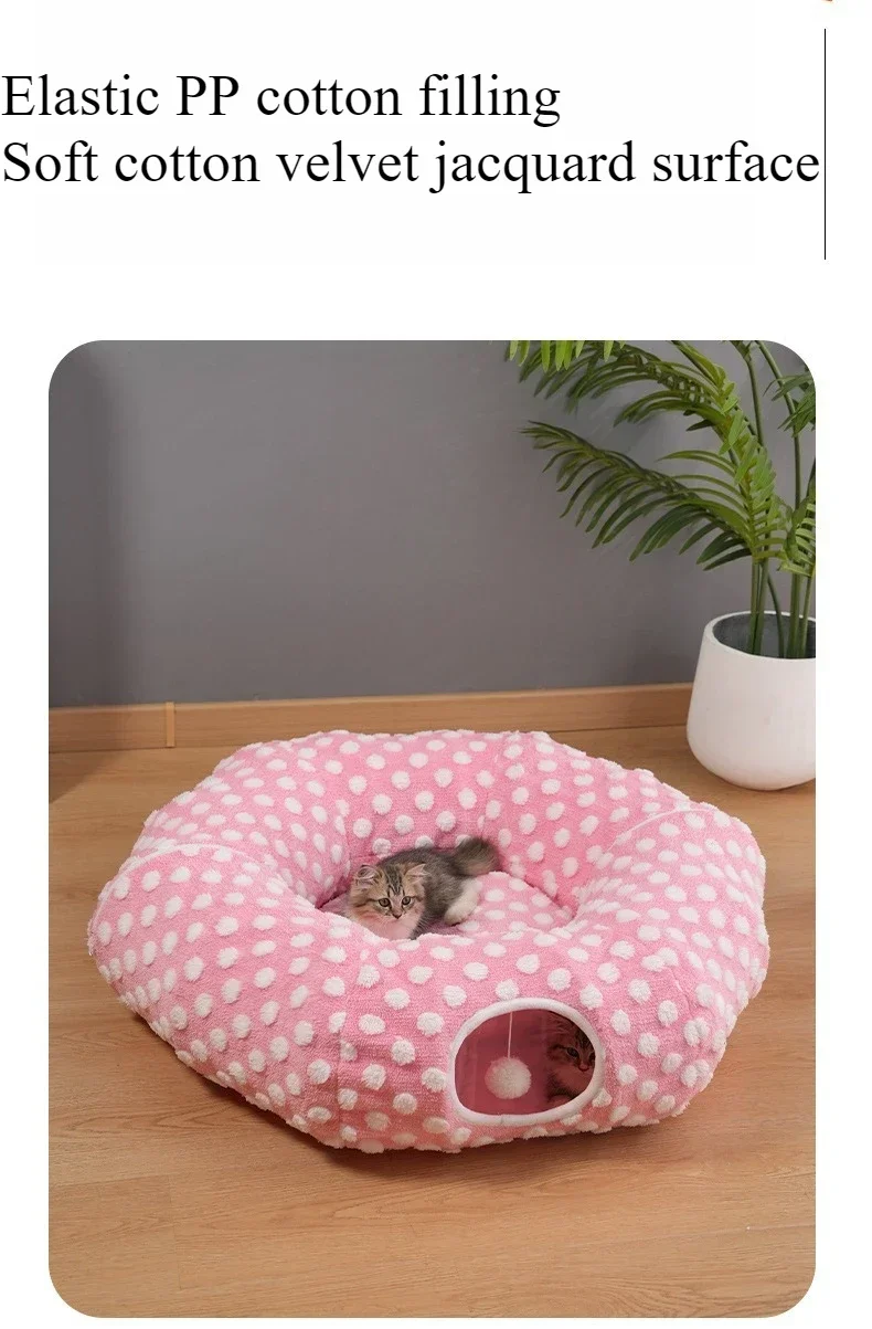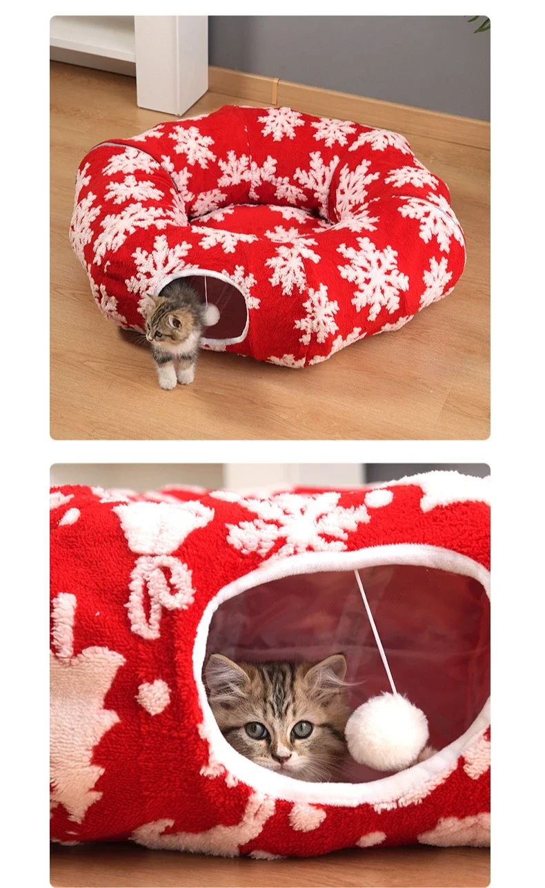 Hot Sale New Red Christmas Cat Drilling Tunnel Cat Nest Folding Multifunctional Kitten Donut Beds Super Soft Plush House Gatos